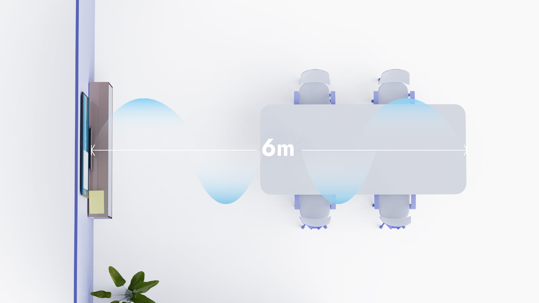 De ingebouwde beamforming-microfoon detecteert de geluidsbron van de spreker en past zich aan voor nauwkeurige geluidsopname binnen een bereik van 6 meter. Geïntegreerde full-range, hoogwaardige luidsprekers leveren helder en consistent geluid op afstand.