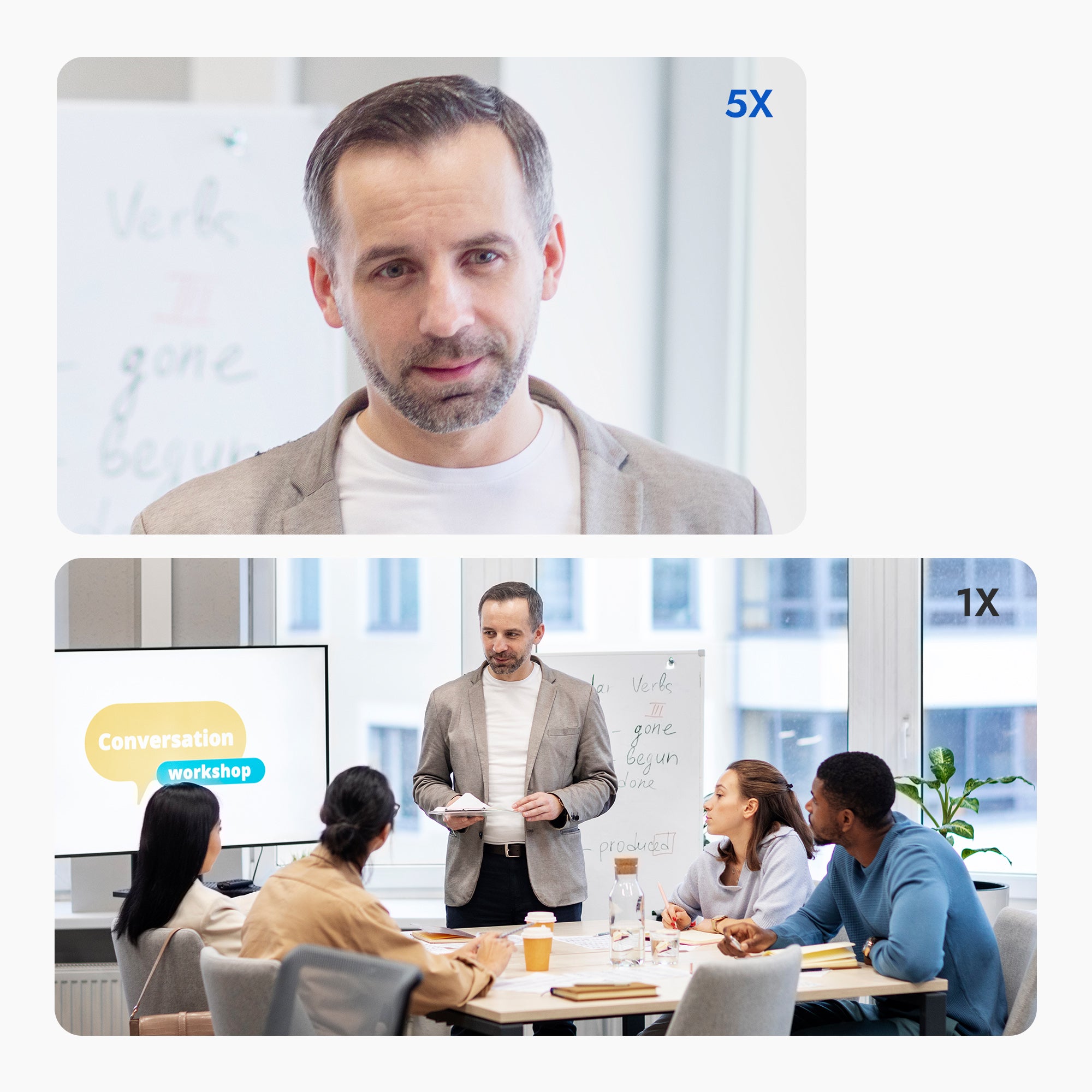 In combinatie met 5x digitale zoom zorgt het ervoor dat elk detail zichtbaar is, ongeacht de afstand. Met een ±15° PTZ-functie kan de camera gemakkelijk worden aangepast om zich te richten op alle deelnemers, zodat iedereen wordt meegenomen, zelfs als ze door de kamer bewegen.