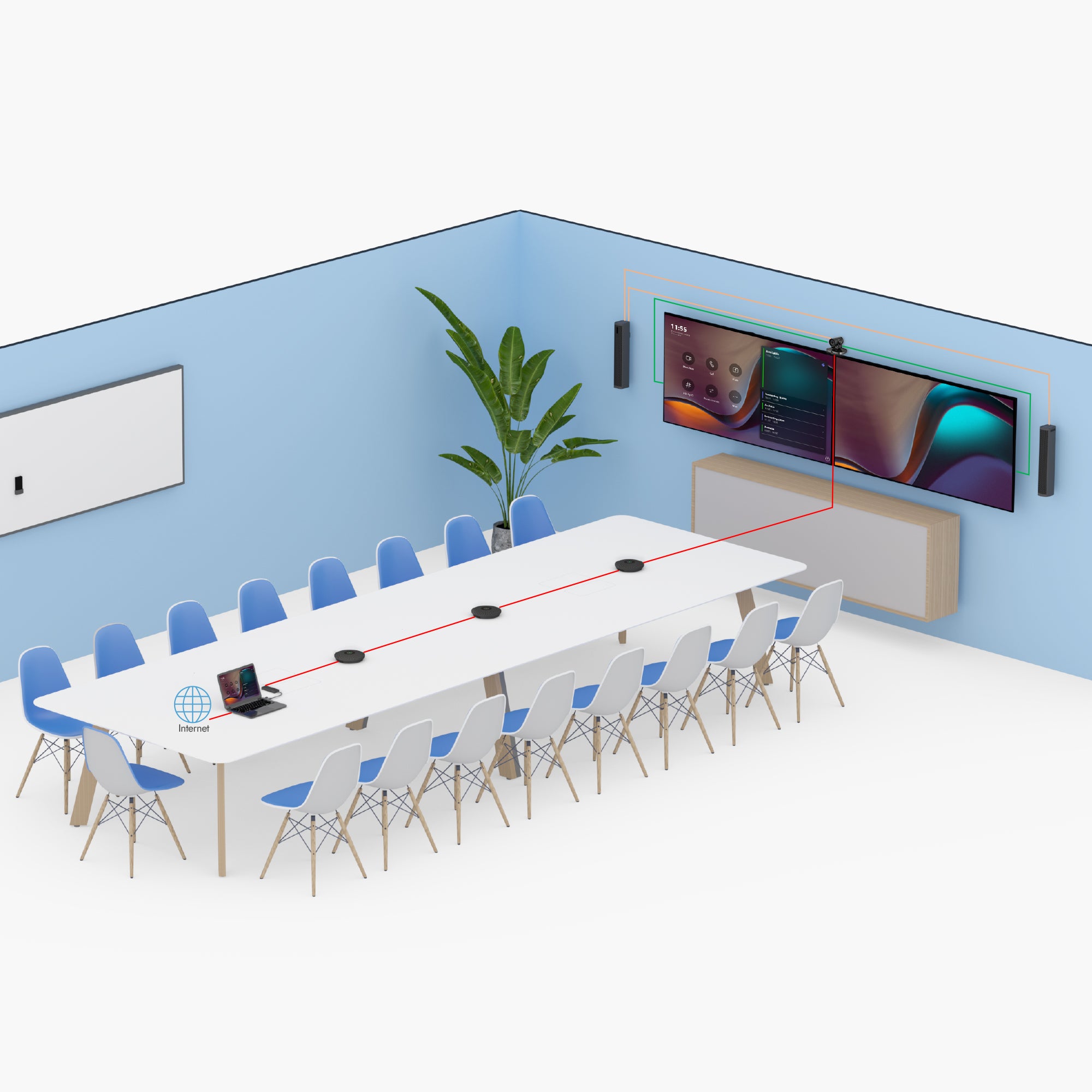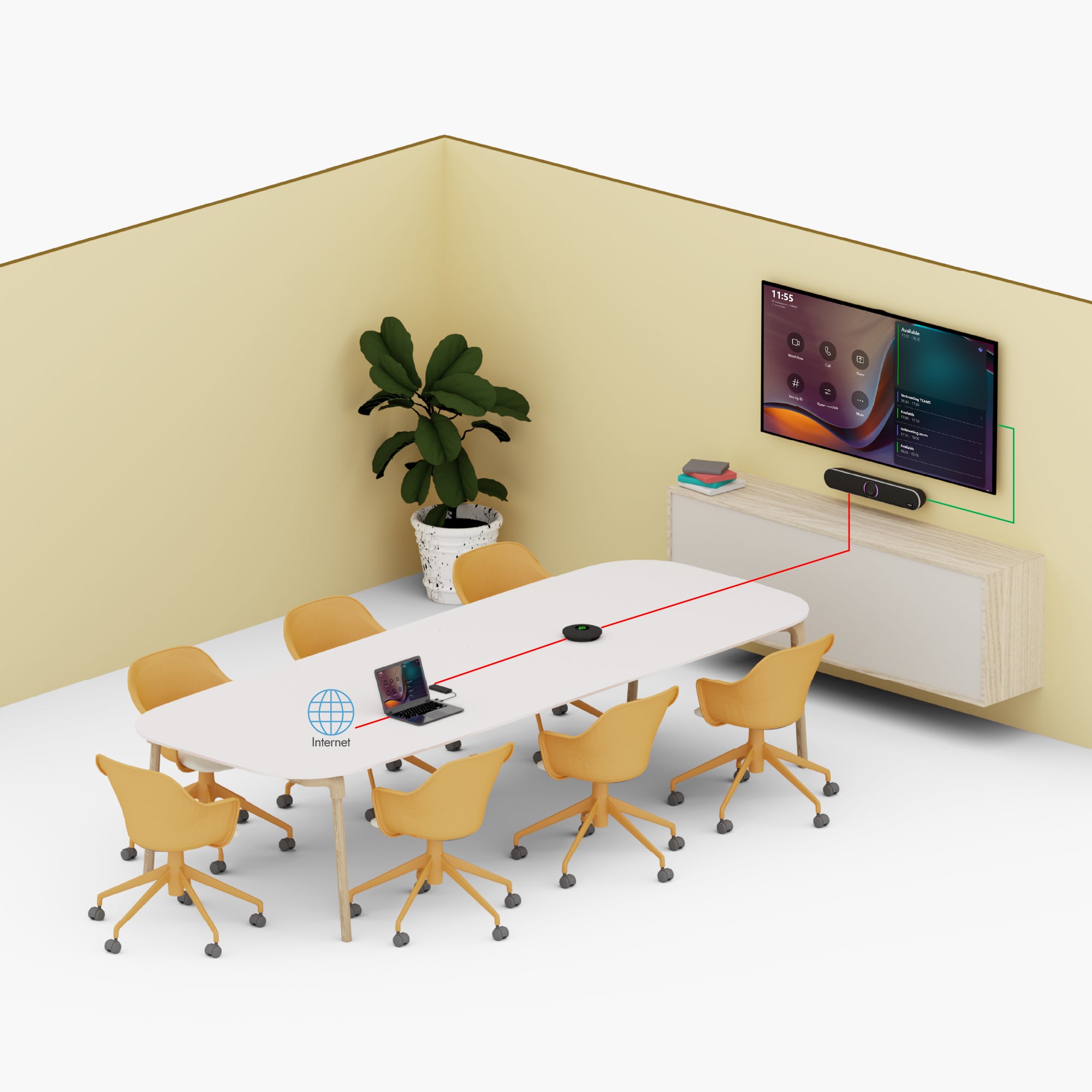 This 3-in-1 4K USB videobar supports wired BYOD mode, offering simple setup, clear audio, and immersive video. With its user-friendly design, it ensures smooth collaboration in any meeting environment.