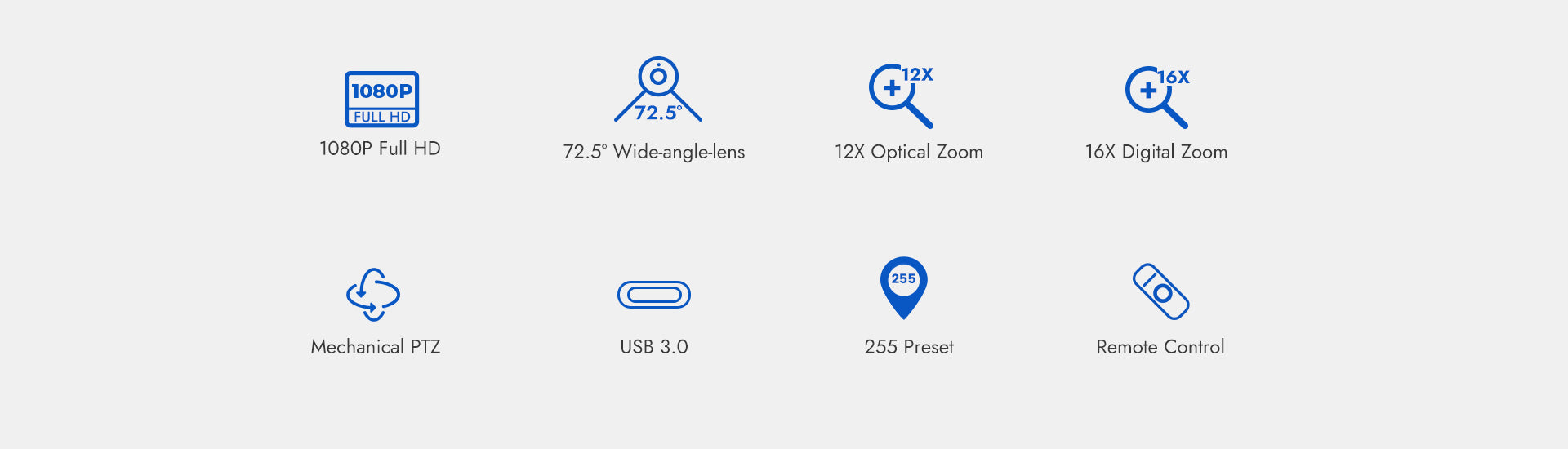 A high-definition video conferencing camera designed specifically for medium to large conference scenarios, featuring a brand-new generation of HD COMS high-quality sensors that deliver 1920x1080 resolution image quality and output frame rates of up to 60 frames per second, providing a more refined and smooth video conferencing experience.