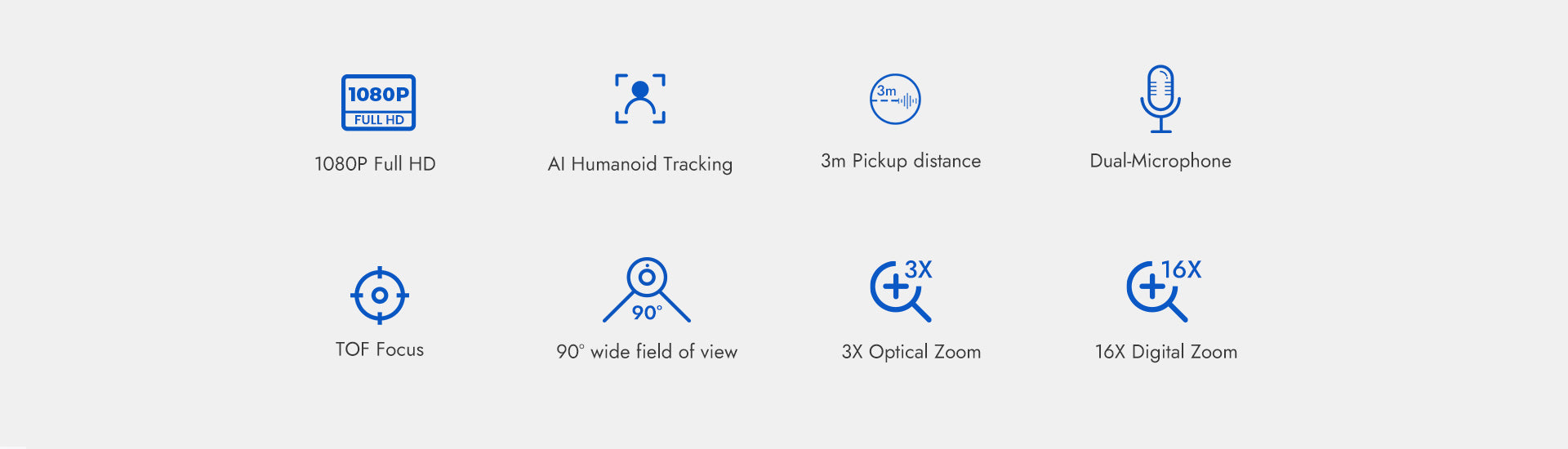 ROCWARE RC310 AI Auto Tracking feature provides full or half-body automatic motion tracking or center zone tracking without the need for a camera operator. It enhances your ability to present content in motion.