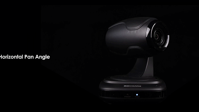 The RC310 1080P HD Mini Video PTZ camera has a 120° vertical tilt angle, 340° horizontal pan angle, and 3x optical zoom. It is compact like a webcam but offers more professional and flexible control.