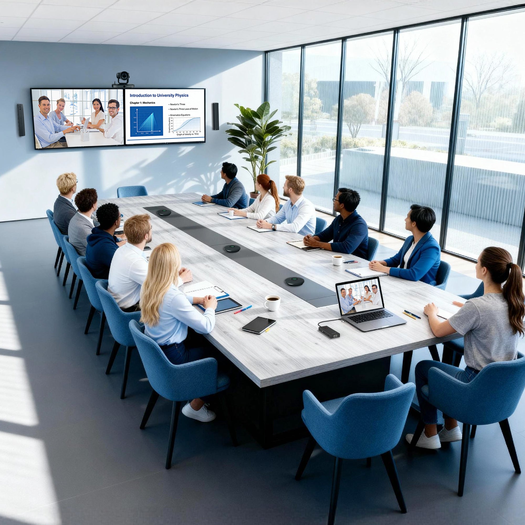 - Configuración inteligente de conferencia 360° con cuatro lentes ultra anchos