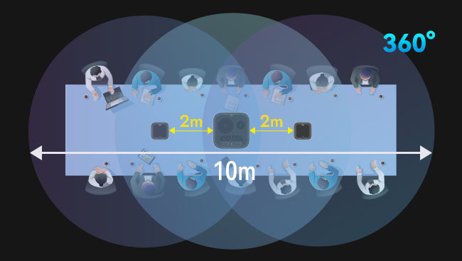 Réseau de microphones numériques à rapport signal/bruit élevé, conception en cascade de microphone principal et microphone étendu, formation automatique de faisceau à 360° omnidirectionnelle pour une capture vocale directe à longue distance, améliore efficacement la qualité des appels audio en salle de conférence.